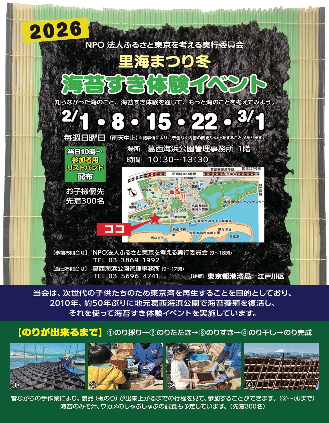 2月~3月 海苔を作ろう! 葛西海浜公園 のりすき体験イベント