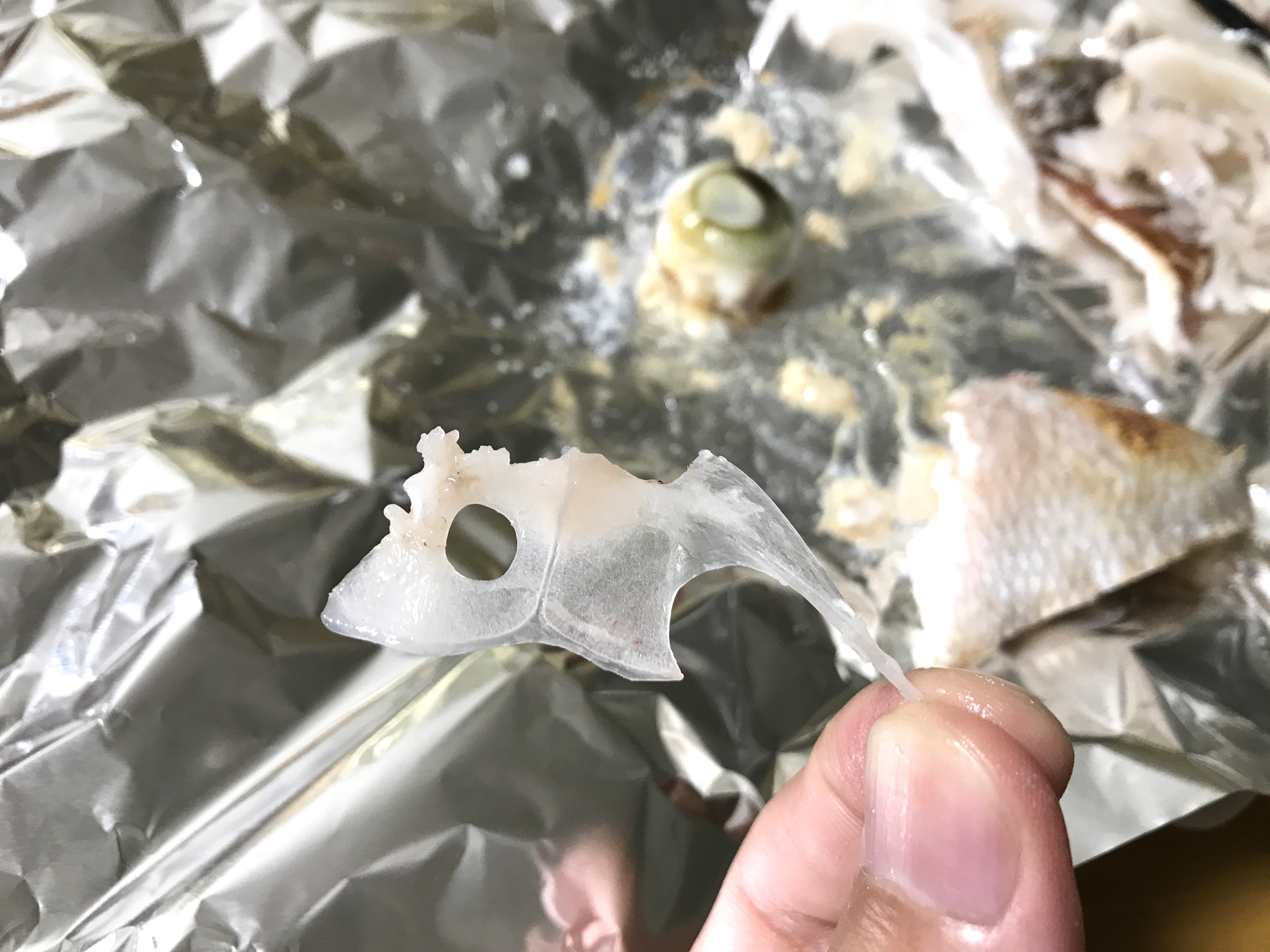 250gぐらいの頭で、残った骨は70gぐらい。ボリュームたっぷり!