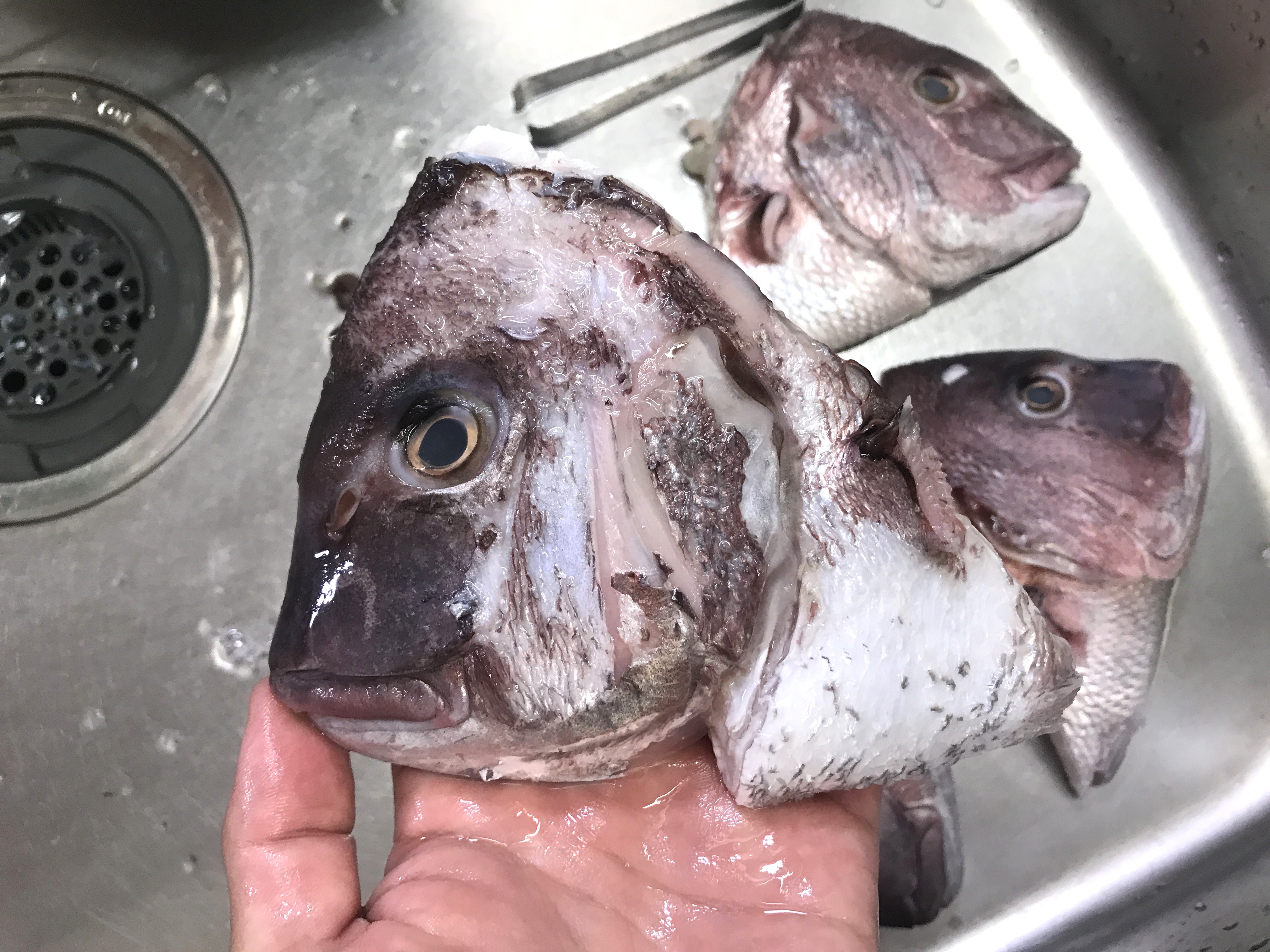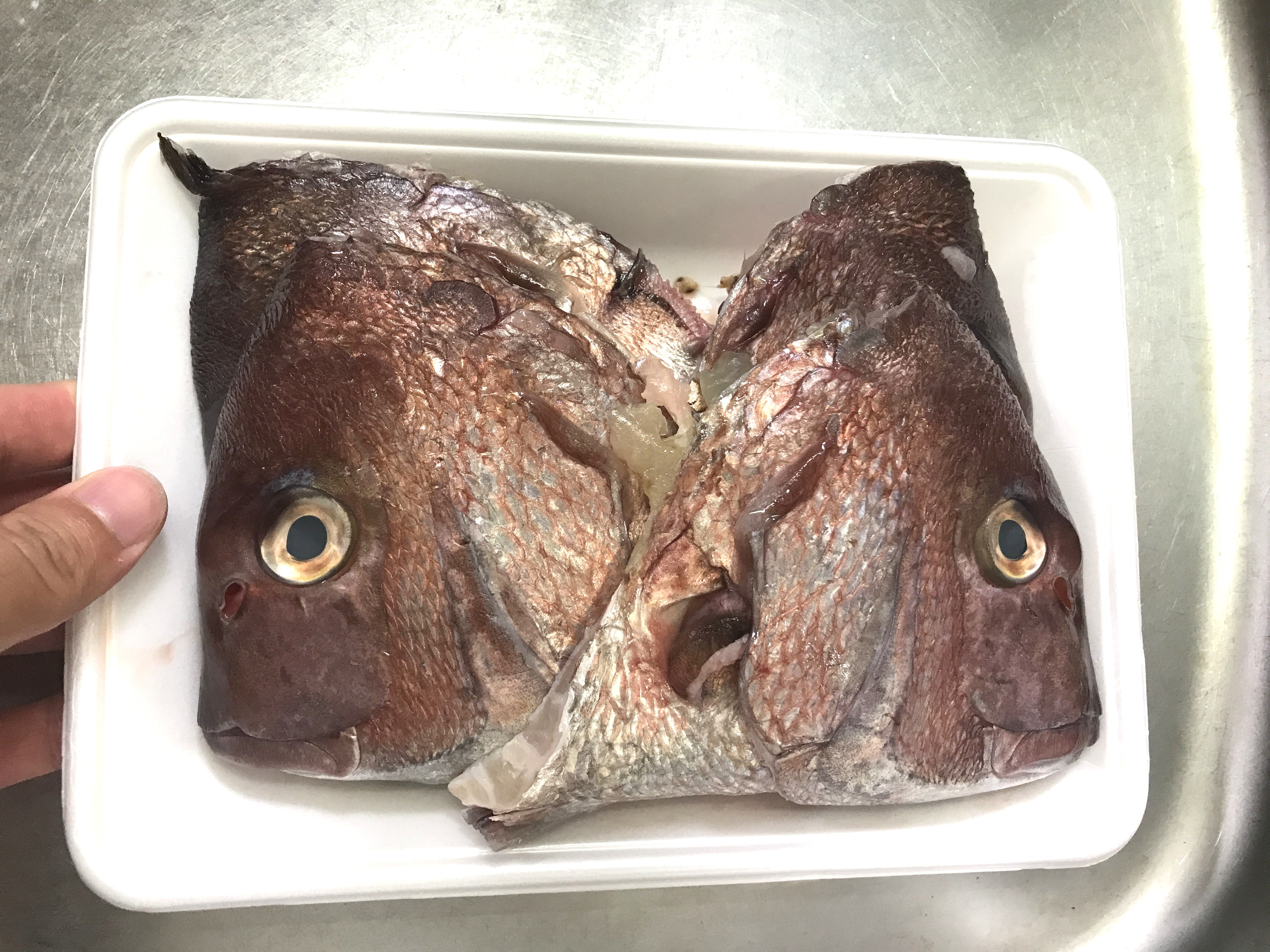 ブリは頭と骨を落としたフィレの状態で運ばれますが、タイは一尾で届いてスーパーで捌かれるためタイの頭はこの時期出てきやすくなるので狙い目です。