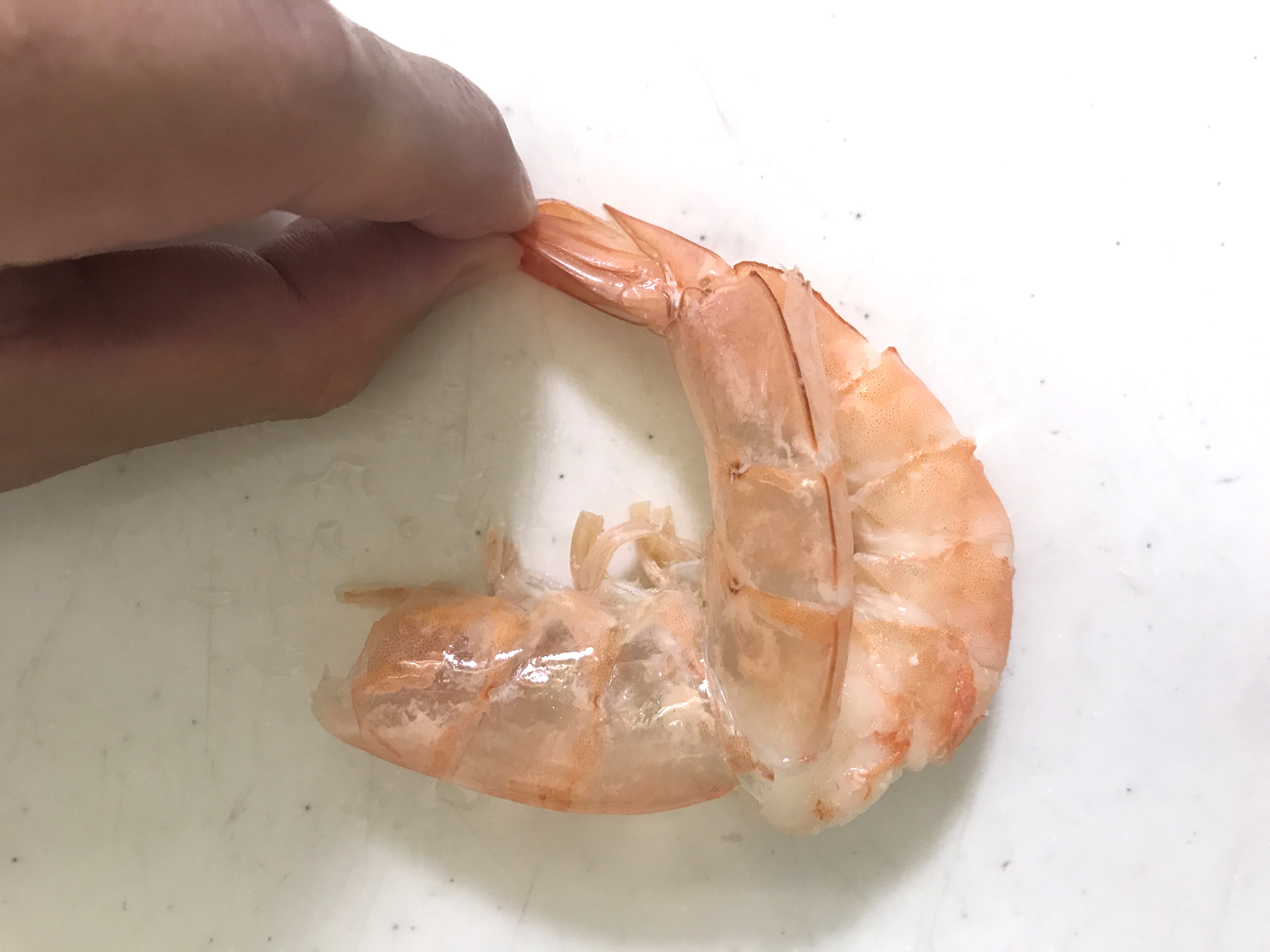 身の方から殻を外し、↓シッポの先だけになったら・・・