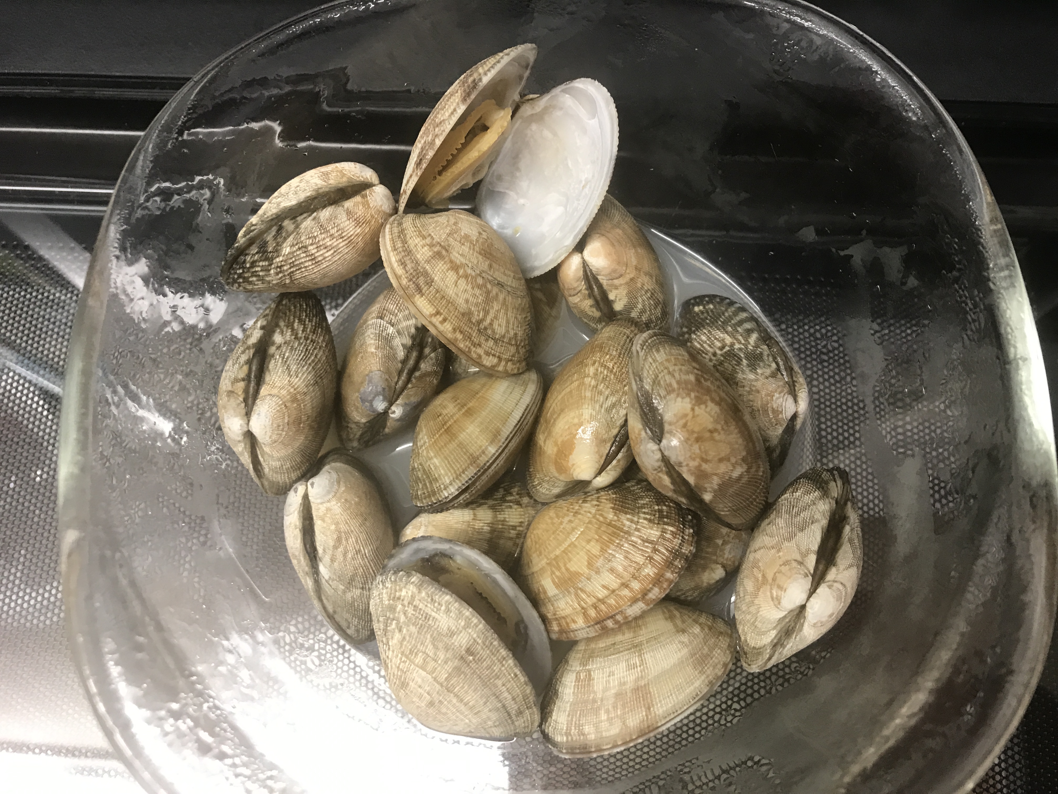一部空いていないアサリもいますが、湯気の具合から十分熱がかかっています。