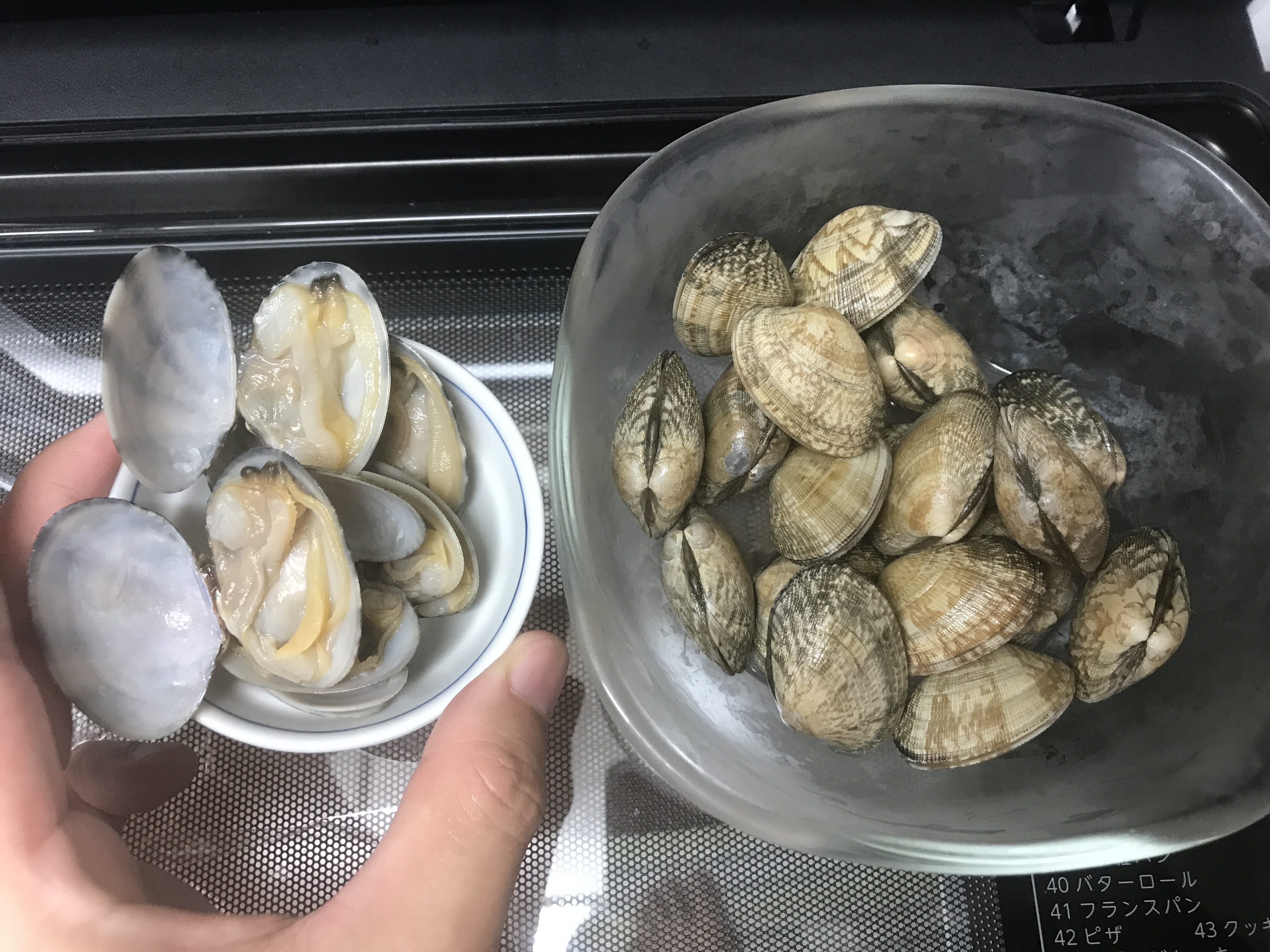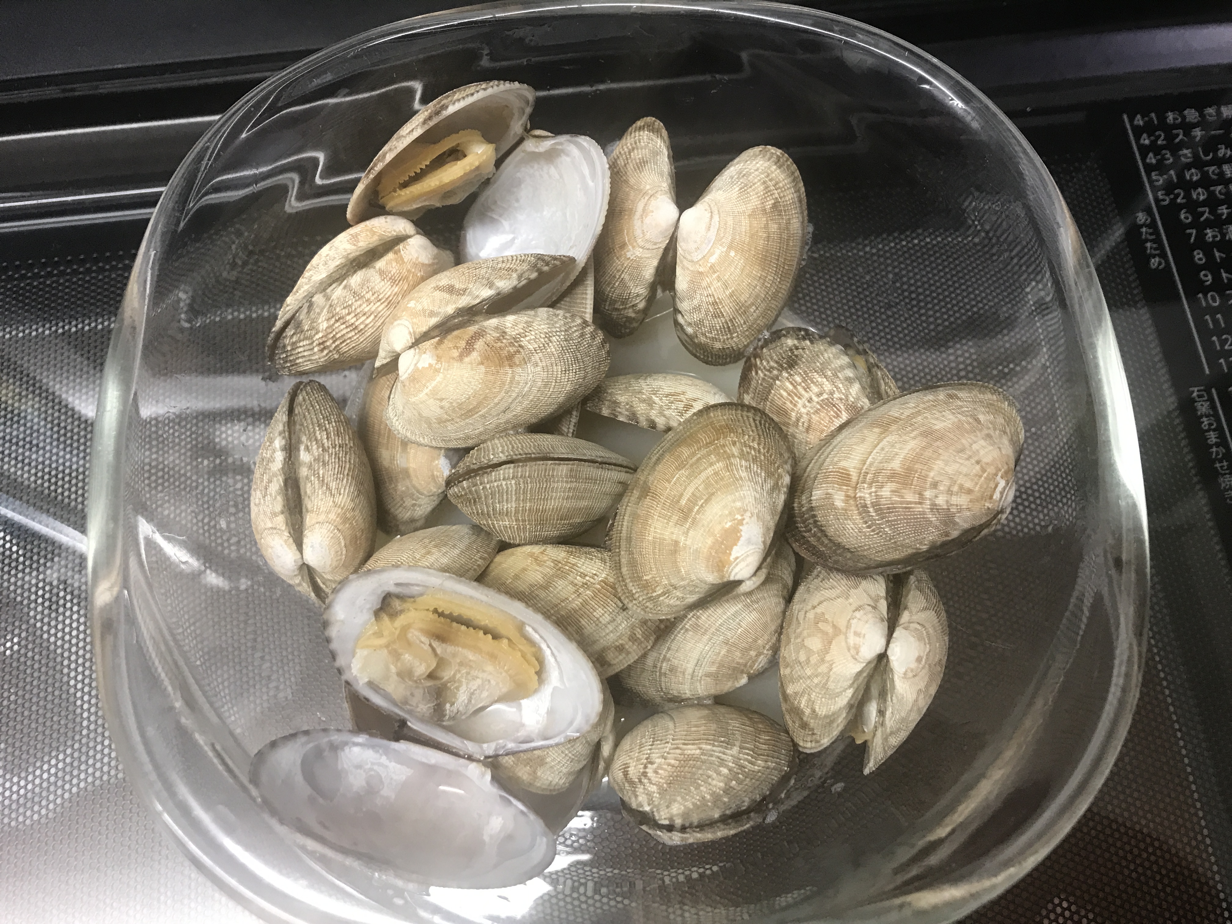 無理やり開けてみると、中のアサリはそんなに縮まっておらず、熱がかかっているかは微妙な感じ。