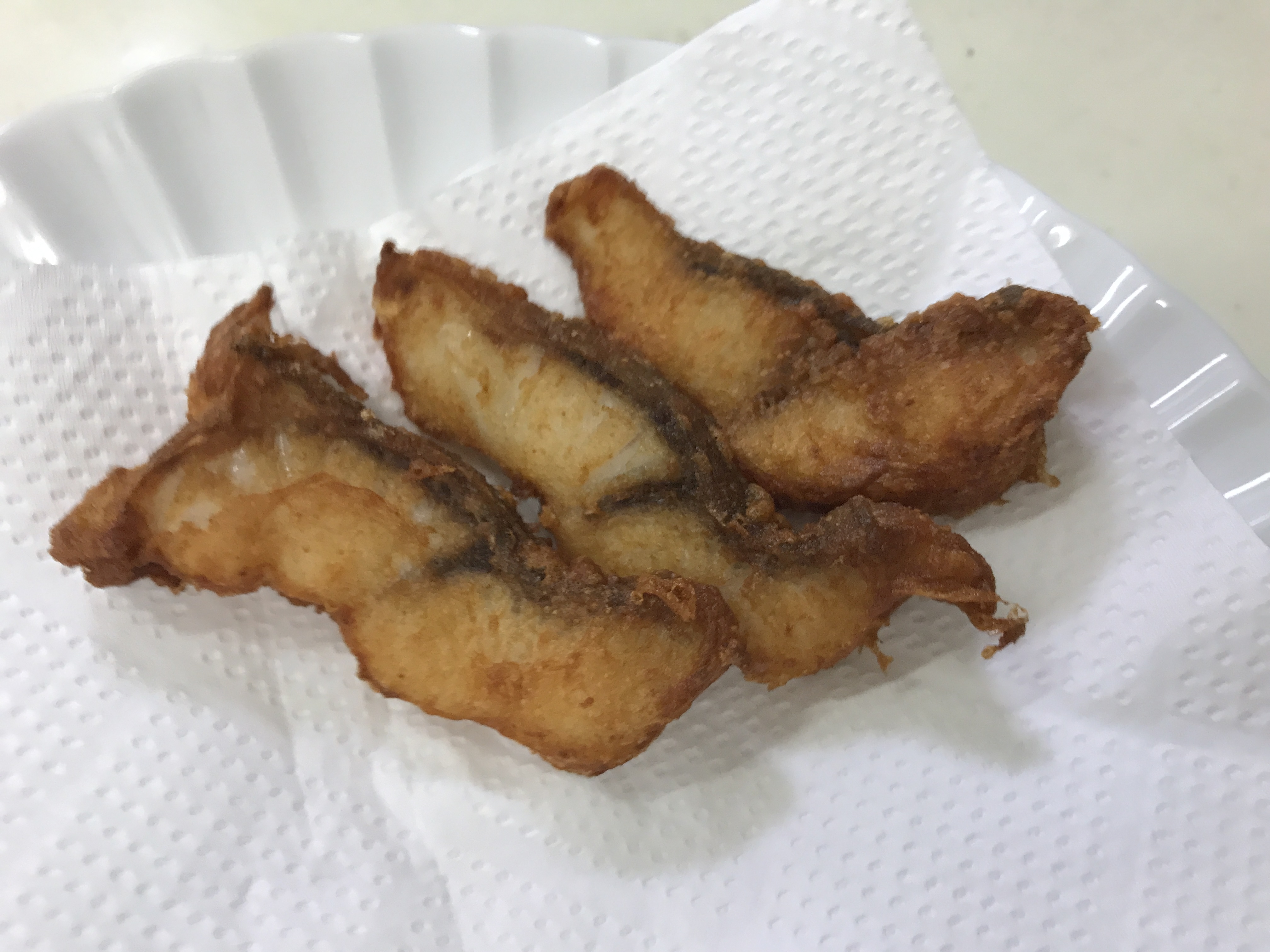ウロコを取る場合、大きい場合は皮を引いた方がいいですが、お湯をかけて撫でてあげると、ボロボロと取れます。唐揚げの場合は皮部分も食べられるのでお湯がおススメ。