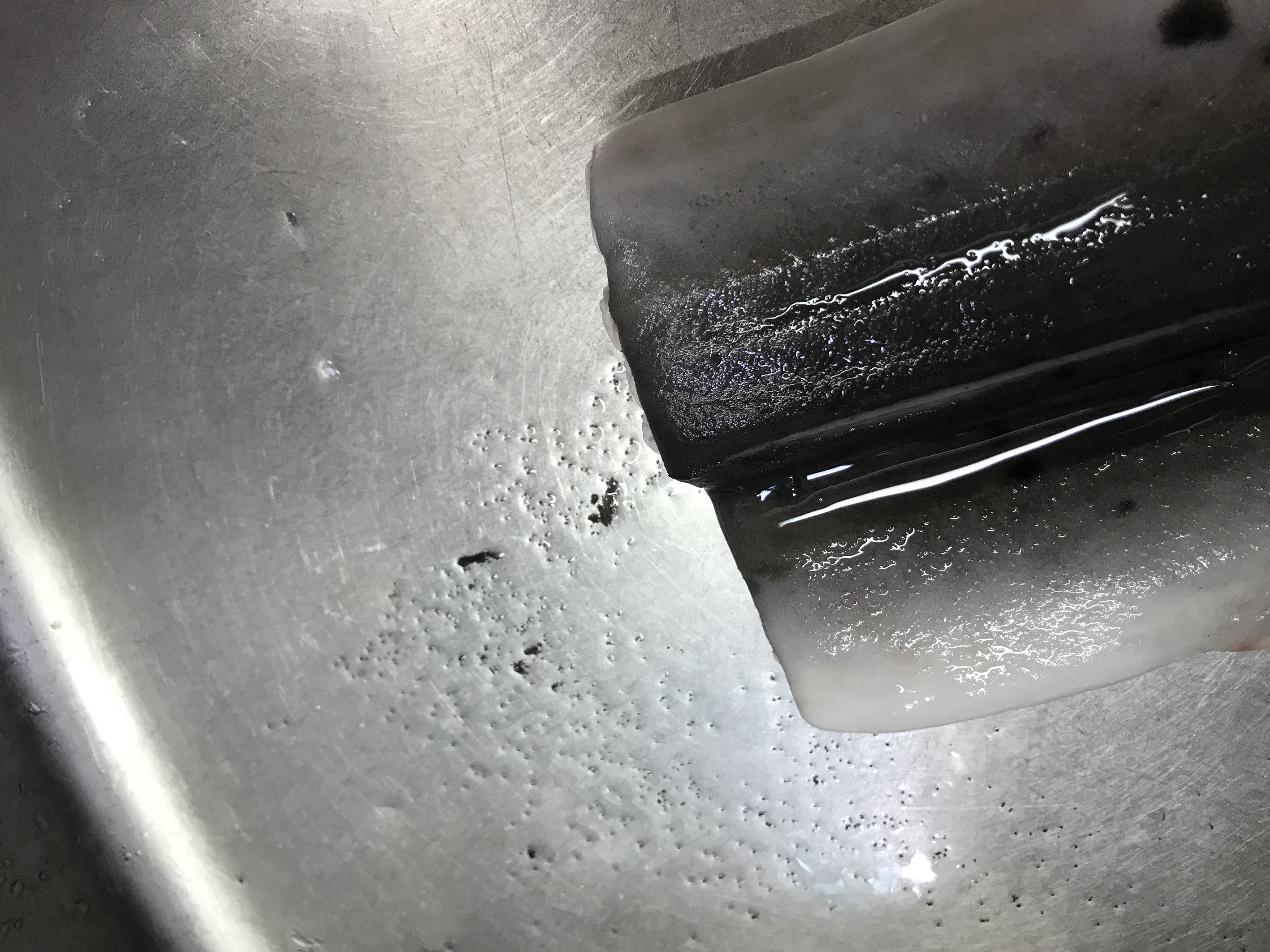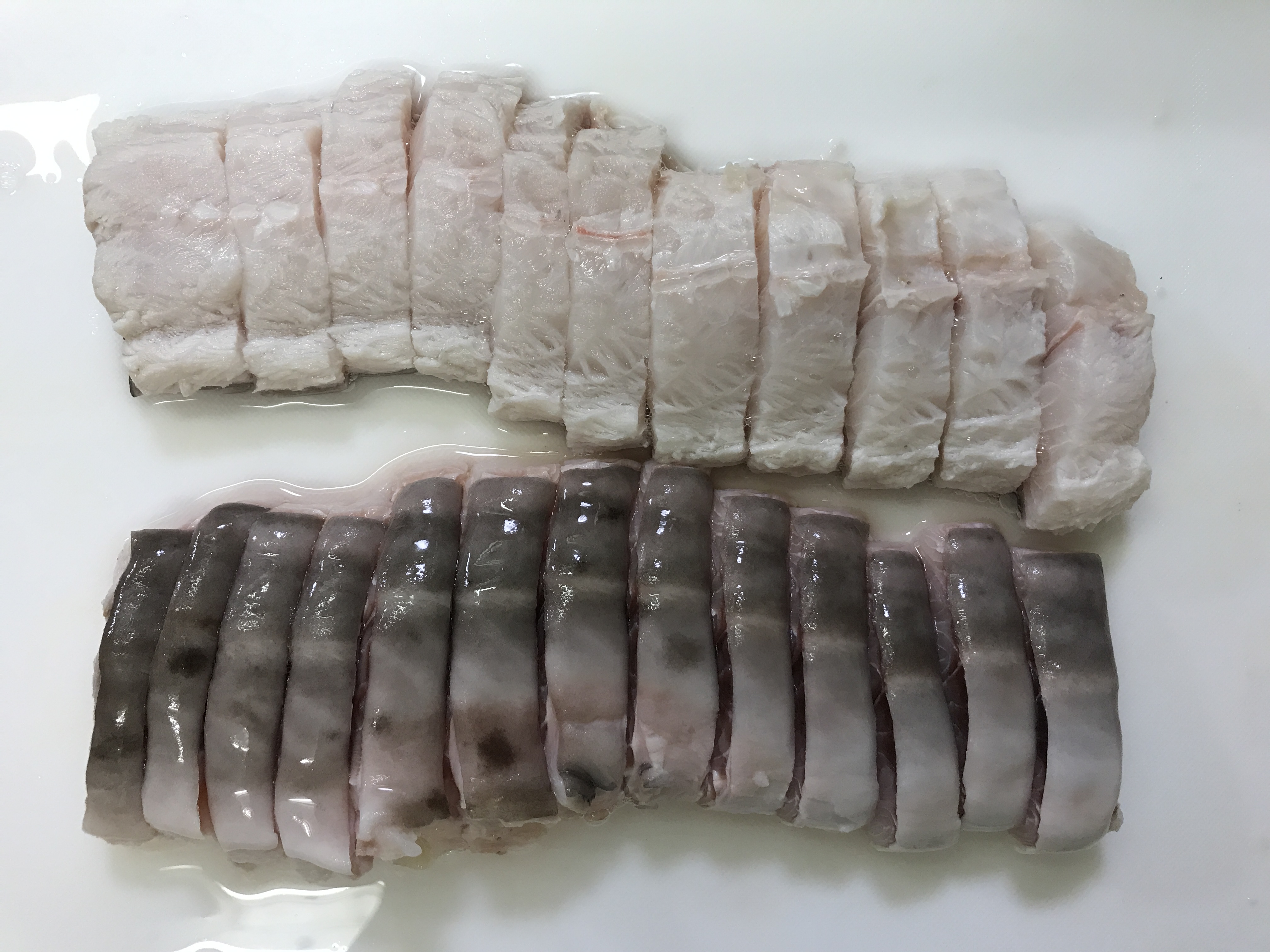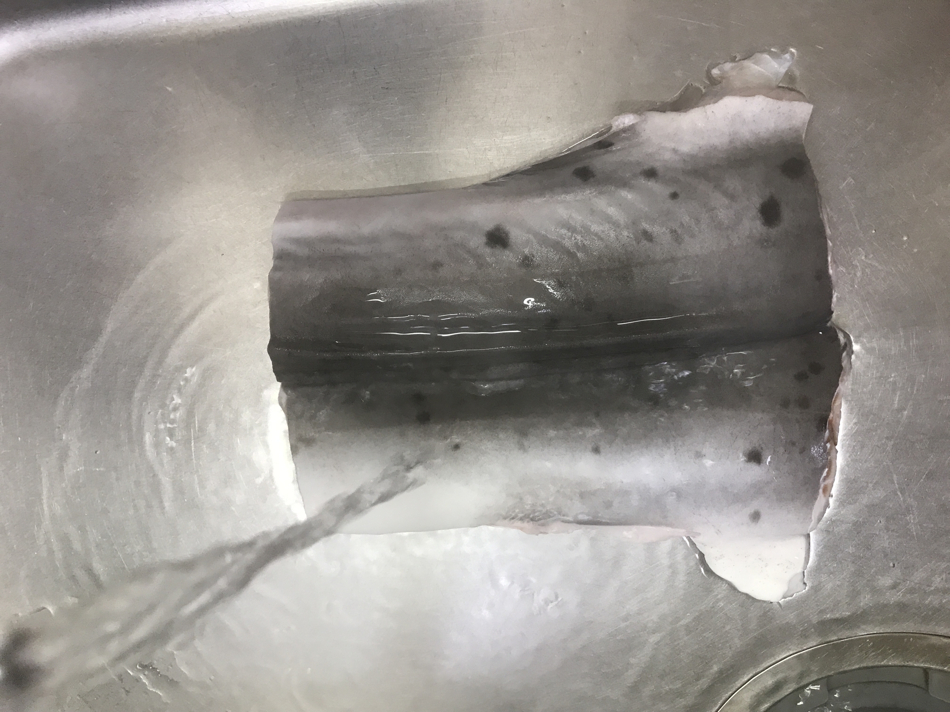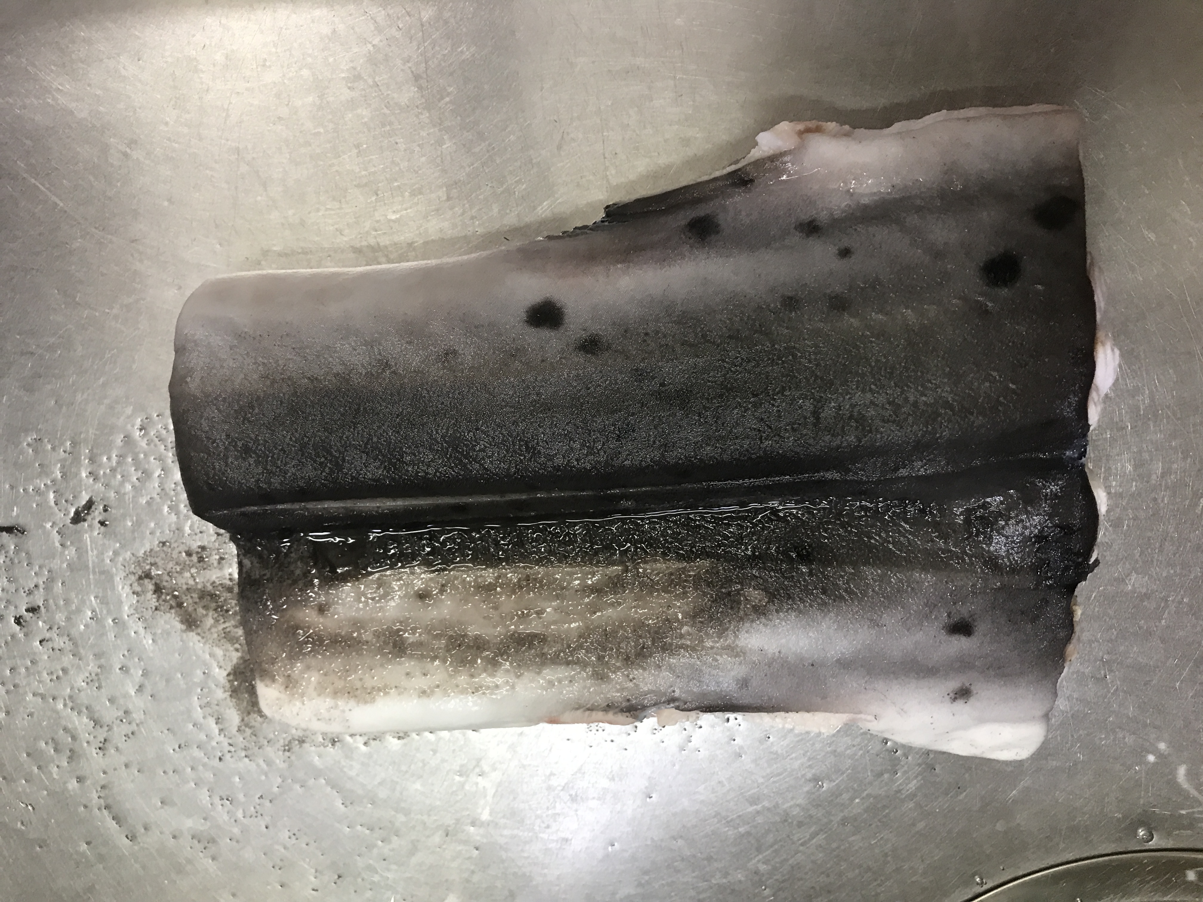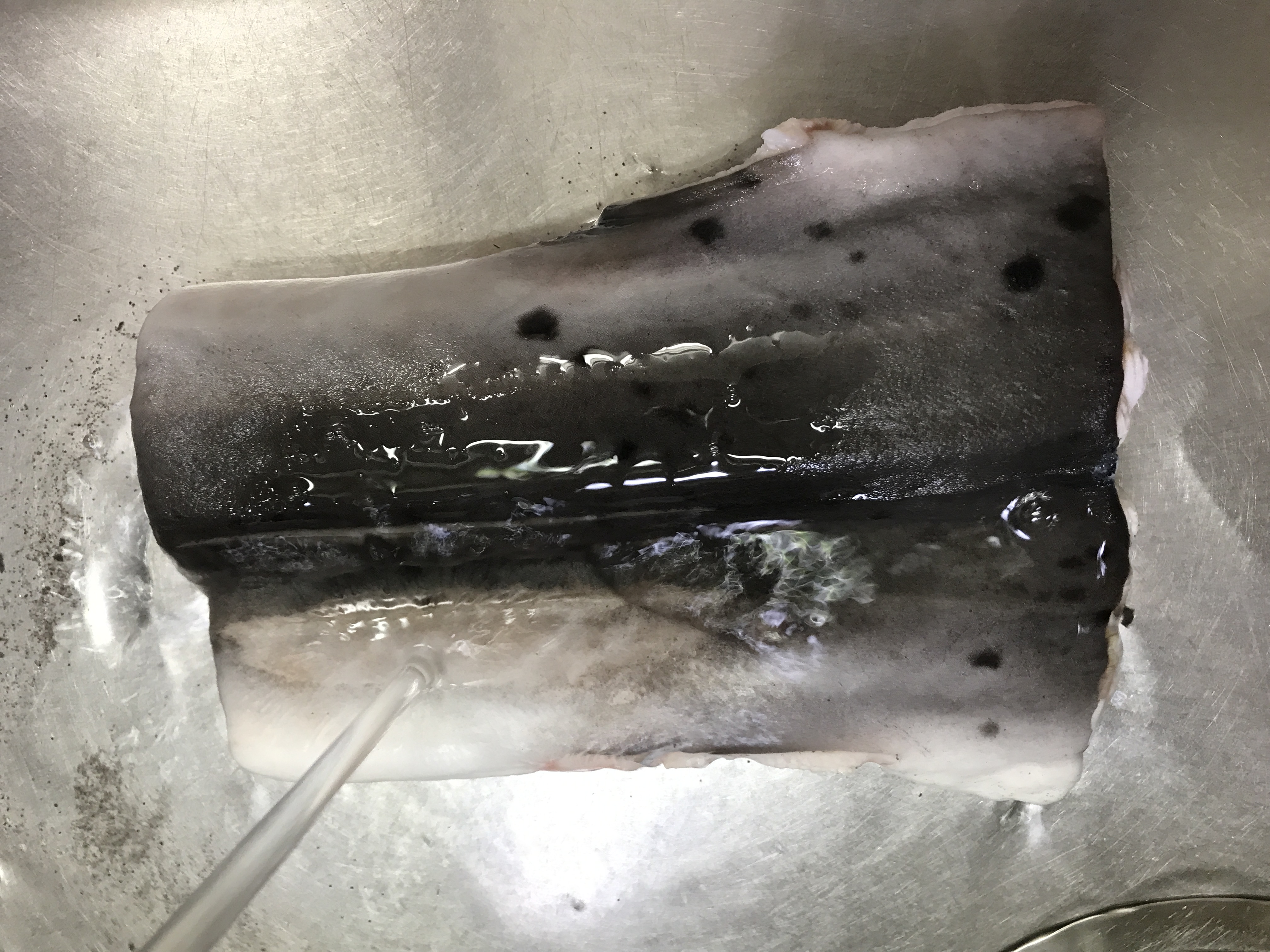 例)身部分 冷凍保管品で、表面が酸化・乾燥しないためにも皮を残していました。