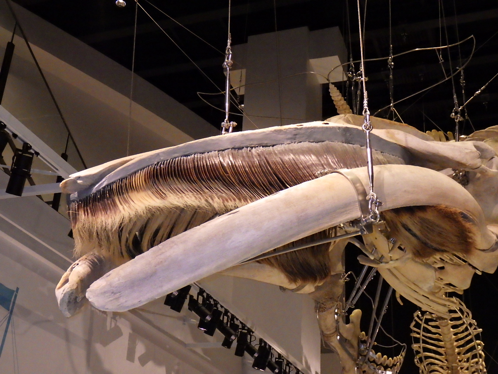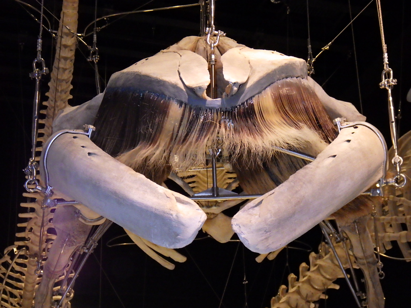 口の中で魚が当たると、クジラ板が少しずつばらけて繊維状になり、その結果オキアミなどの小さな生物も上手に濾し取れそうです。生物の体は、うまくできていますね!