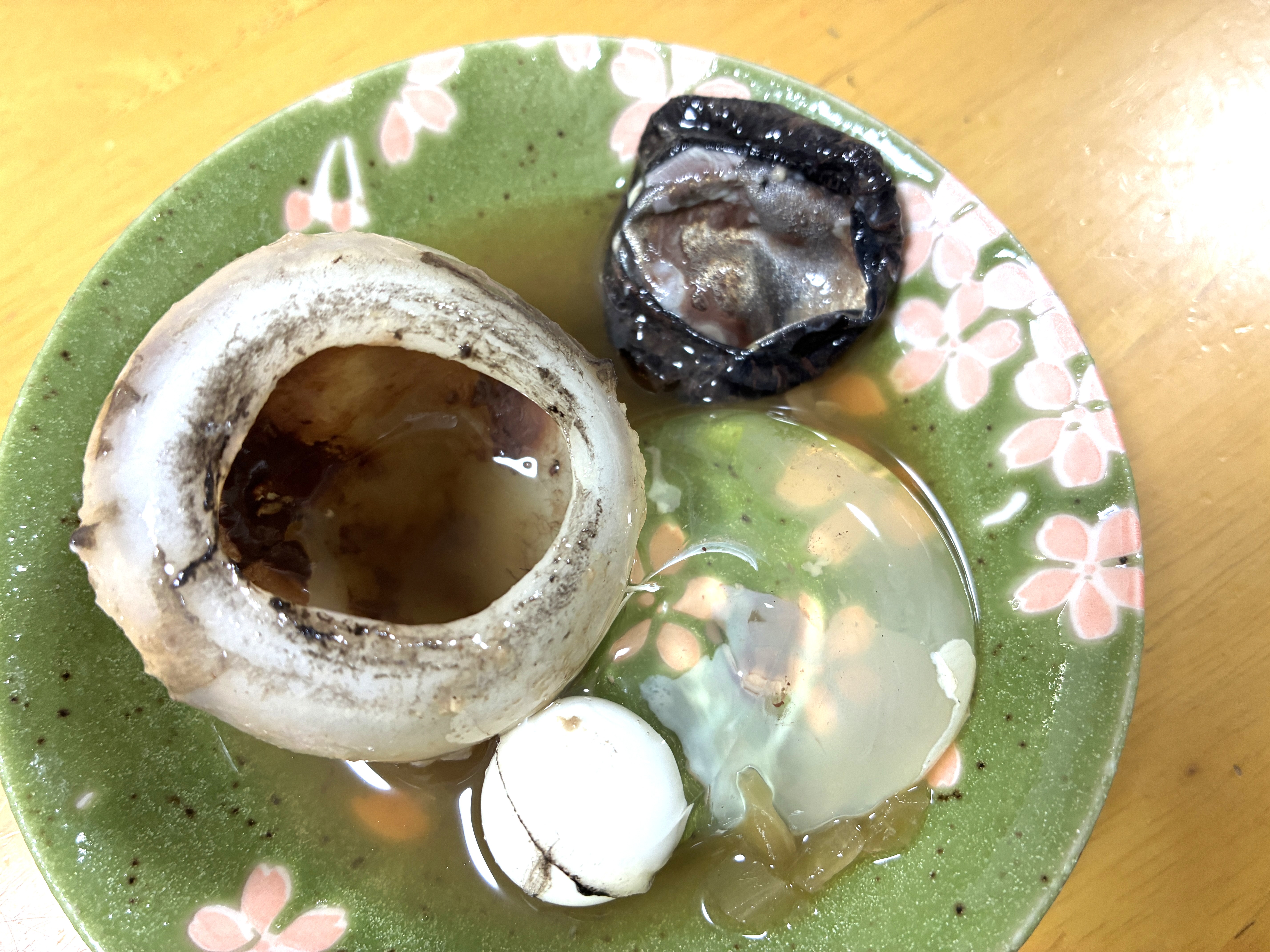 水晶体もガリガリ食べて、うまかった!と皿洗いのタイミングで歯ブラシでやさしく内側外側をこすり洗い。