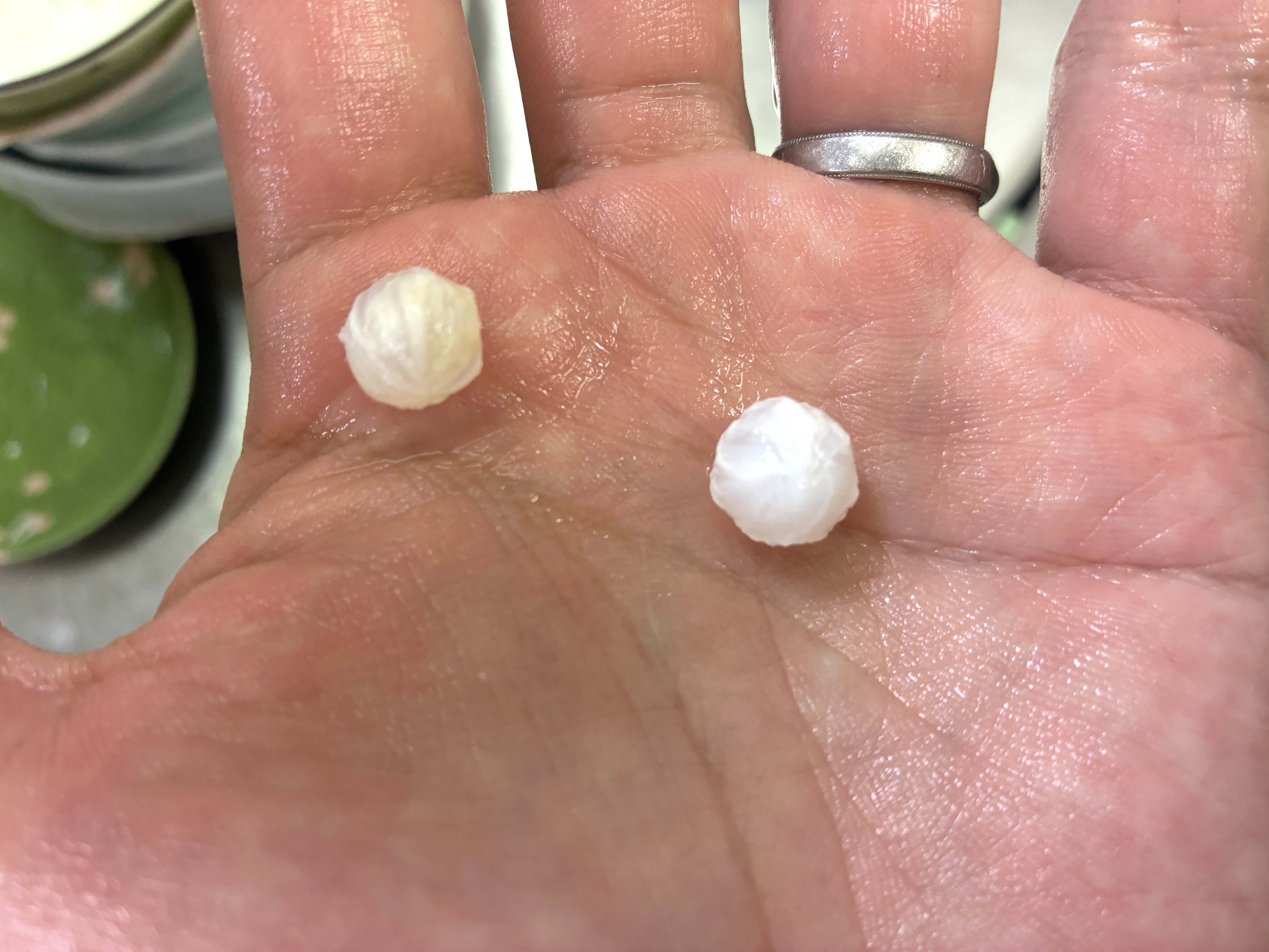 ↓スルメイカの水晶体は、生で取り出して乾かすとこんな感じに。